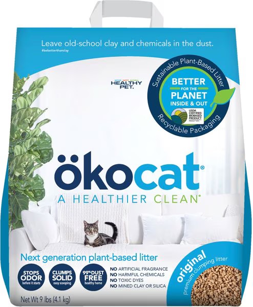 Made from reclaimed wood fibers, Ökocat offers a highly absorbent, low-dust alternative to traditional litters. It’s biodegradable and chemical-free.