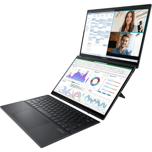 The ASUS Zenbook Duo offers a unique dual-screen setup, enhancing multitasking capabilities for professionals. Its powerful internals ensure smooth performance across various productivity applications.